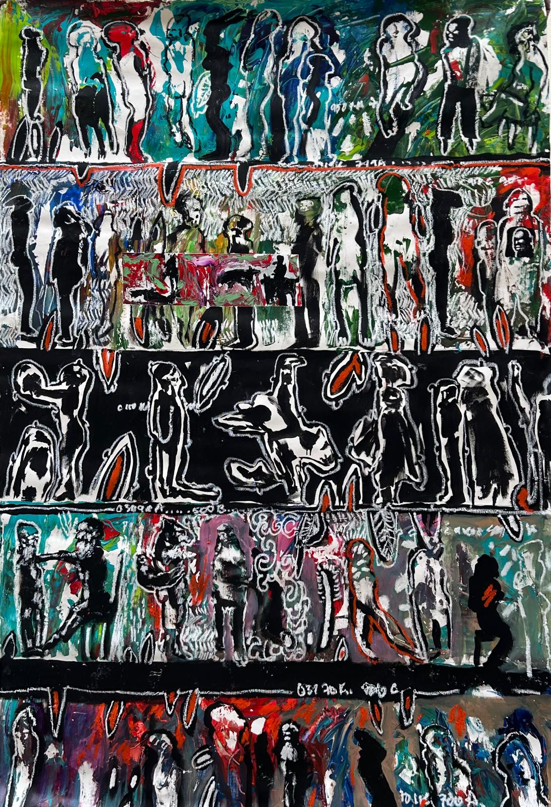 Deeply influenced by a childhood spent in a hunting village near the Bafing River in Mali—an environment governed by social conventions akin to secret myths—Soly Cissé fills his canvases with humans, animals, plants, spirits, and more, all connected by invisible interdependencies.